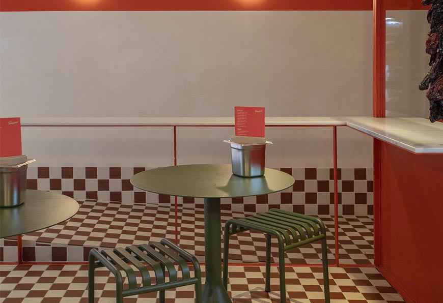 Inspirado en la esencia de la Toscana. El suelo de damero y la charcutería en la fachada interior son algunos de los elementos que evocan un mercado tradicional, mientras que el espacio abierto y las mesas tipo barra ofrecen una experiencia gastronómica casual y dinámica.